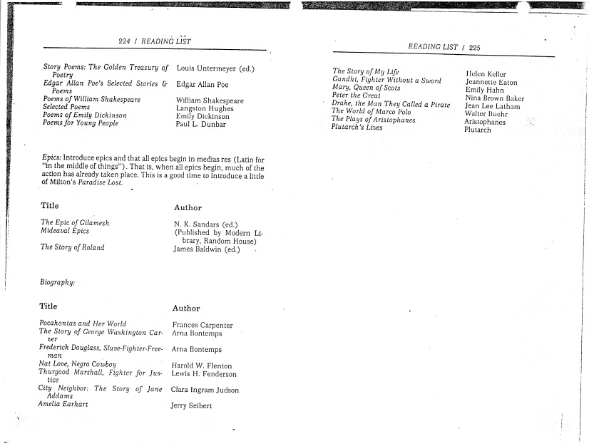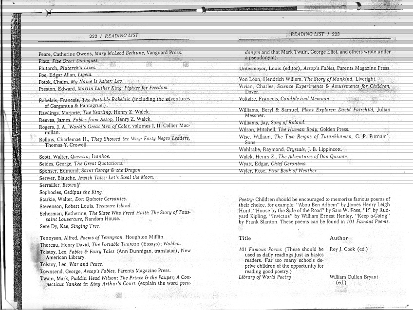 Suggested Reading List from Marva Collins West End Preparatory School